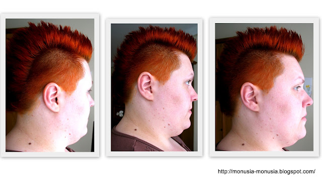 Oczywiście nie zrezygnowałam z mojego irokeza. Wręcz przeciwnie… niby ten sam, ale jednak inny, bo inne techniki strzyżenia. Na razie włosy świetnie się układają, jeśli będzie tak nadal jak odrosną to salon Jean Louis David będzie miał stałą klientkę…