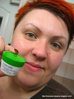 Na całą twarz nakładam swój ulubiony krem (BANDI Krem z kwasem pirogronowym, azelainowym i salicylowym (80 zł/50 ml)). Ten z kwasami dodatkowo jeszcze wygładzi moją twarz.
