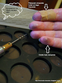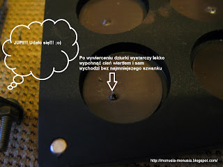 Kiedy już zwątpiłam, że je stamtąd wydobędę nagle mój ukochany wpadł na pomysł żeby wywiercić dziurki w palecie i wypchnąć cienie. Patrzcie jaki profesjonalny sprzęt dostałam ;oP