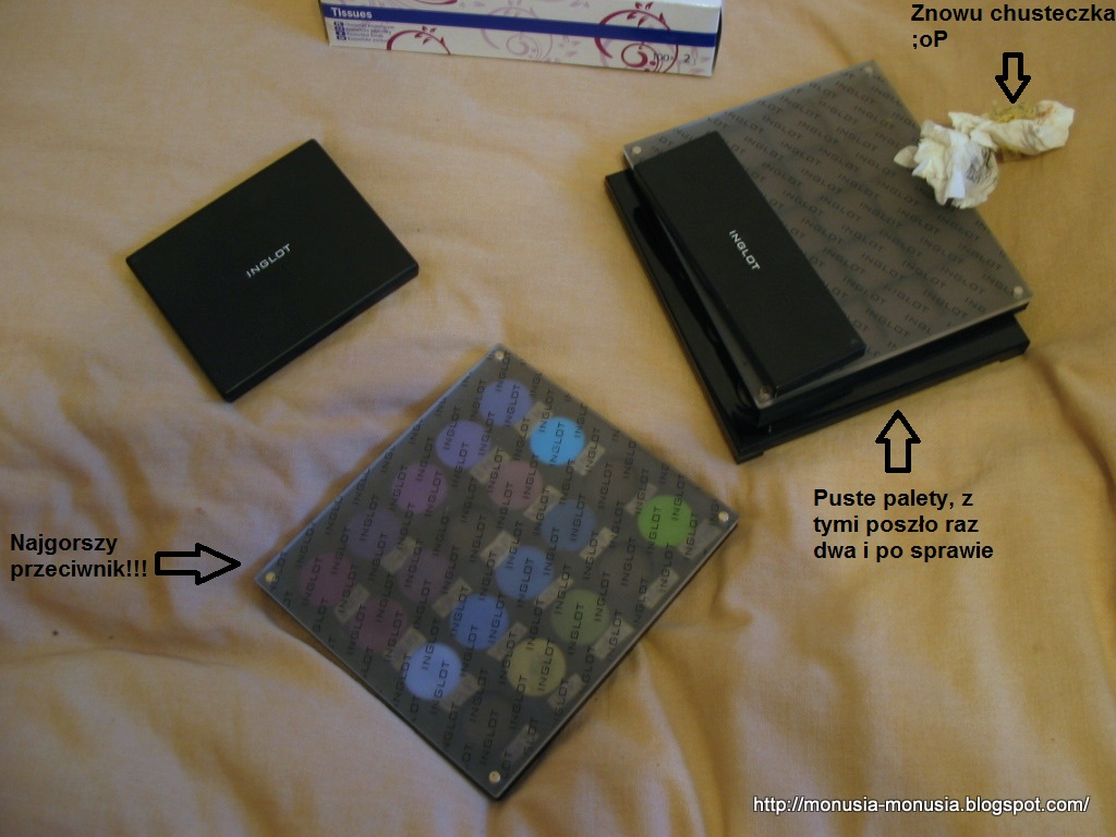 Niestety za głupotę trzeba płacić – za własną bo nie usunęłam kleju i za pomysłodawcy Inglota, który nie rozwiązał problemu wyjmowania cieni z palety.