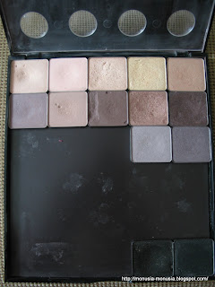 Cienie, które nie pochodziły z testera całkiem ładnie wychodziły za pomocą magnesu lub po prostu przez lekkie podważenie. Choć parę cieni niestety ucierpiało bo kretyński pomysłodawca palet z Inglota nie wpadł na pomysł żeby ułatwić użytkownikowi wyjmowanie cieni z palet.