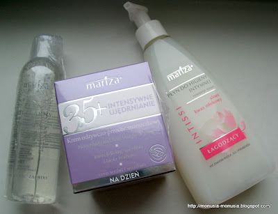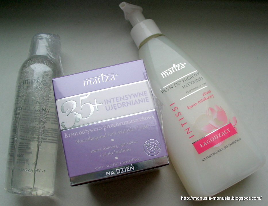 Płyn micelarny z serii Mariza Selective (cena katalogowa 19,90 zł), Krem odżywczo-przeciwzmarszczkowy na dzień z serii 35+ Intensywne Ujędrnianie (cena katalogowa 22,90 zł), Łagodzący płyn do higieny intymnej (cena katalogowa 16,90 zł)