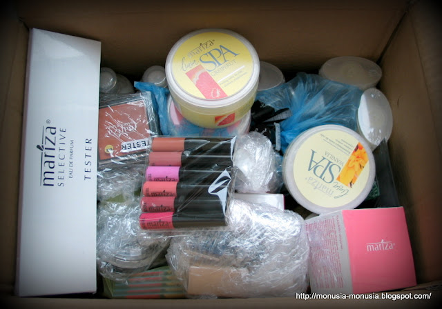 Faktycznie paczka imponujących rozmiarów. 😉 Też się chciałam „wkręcić” do Marizy jako konsultantka, ale odpuściłam sobie jednak.