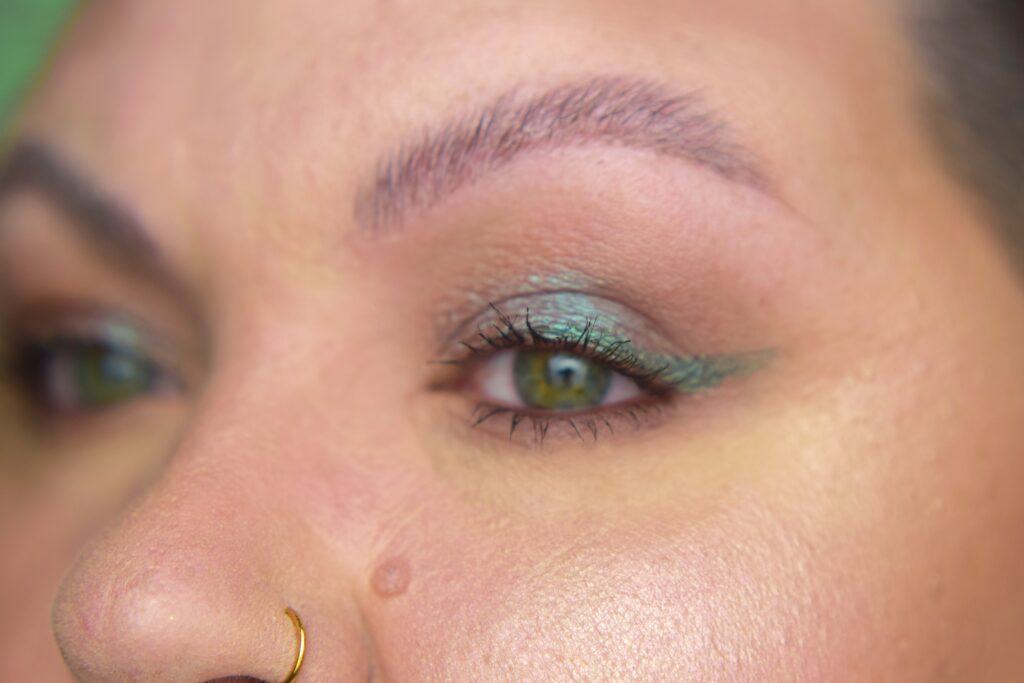 - Drugim, zielonym metalikiem na mokro rysuję kreskę.