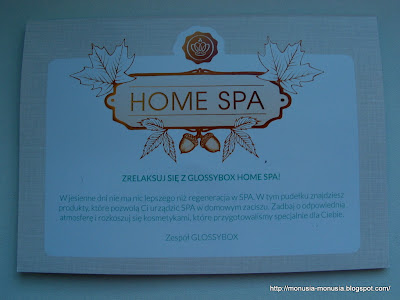 Tematem przewodnim październikowego GlossyBox jest HOME SPA czyli…. domowe spa! Produkty znajdujące się w tym pudełku mają nam umilić długie, jesiennie wieczory przy SPA w domowym zaciszu.