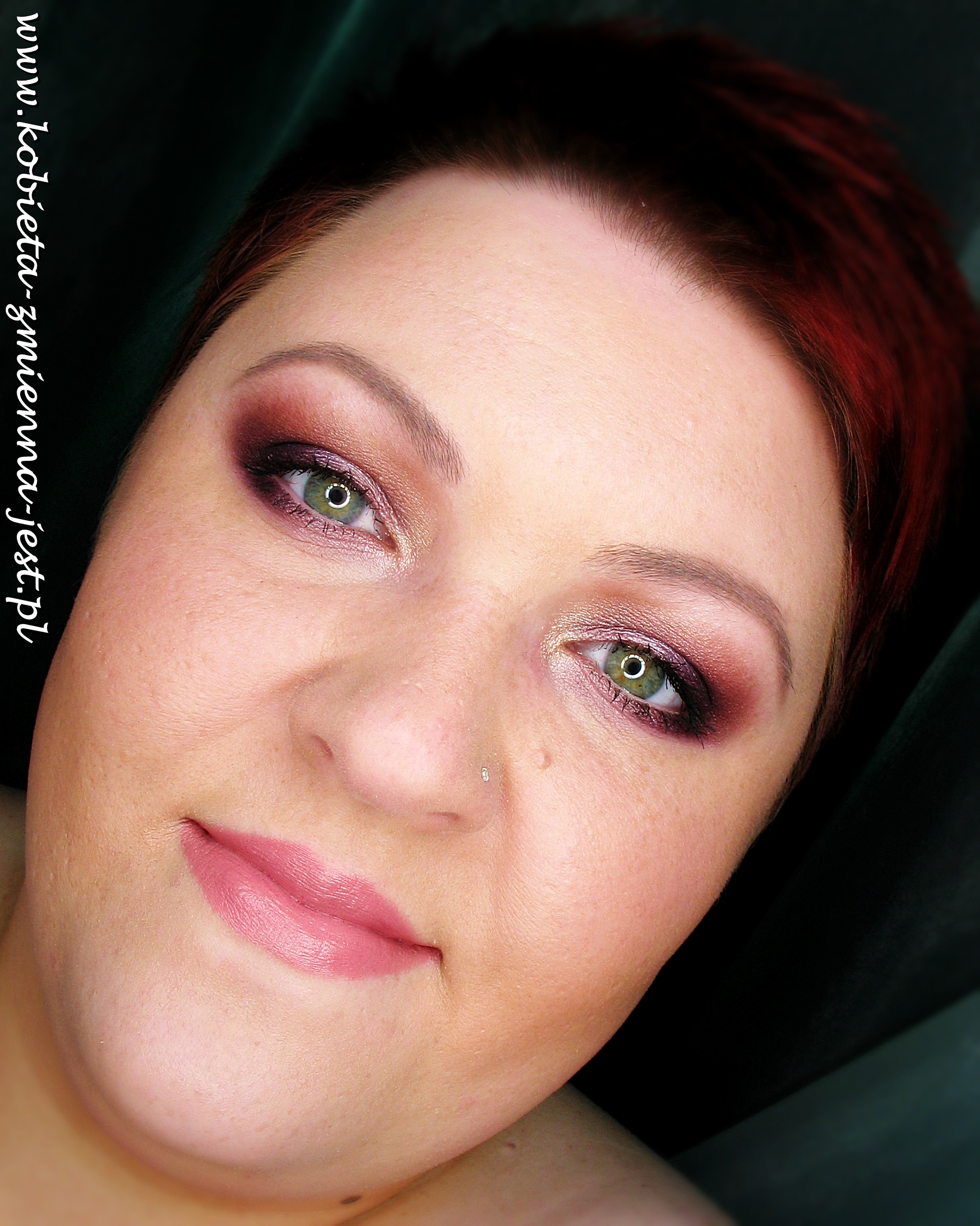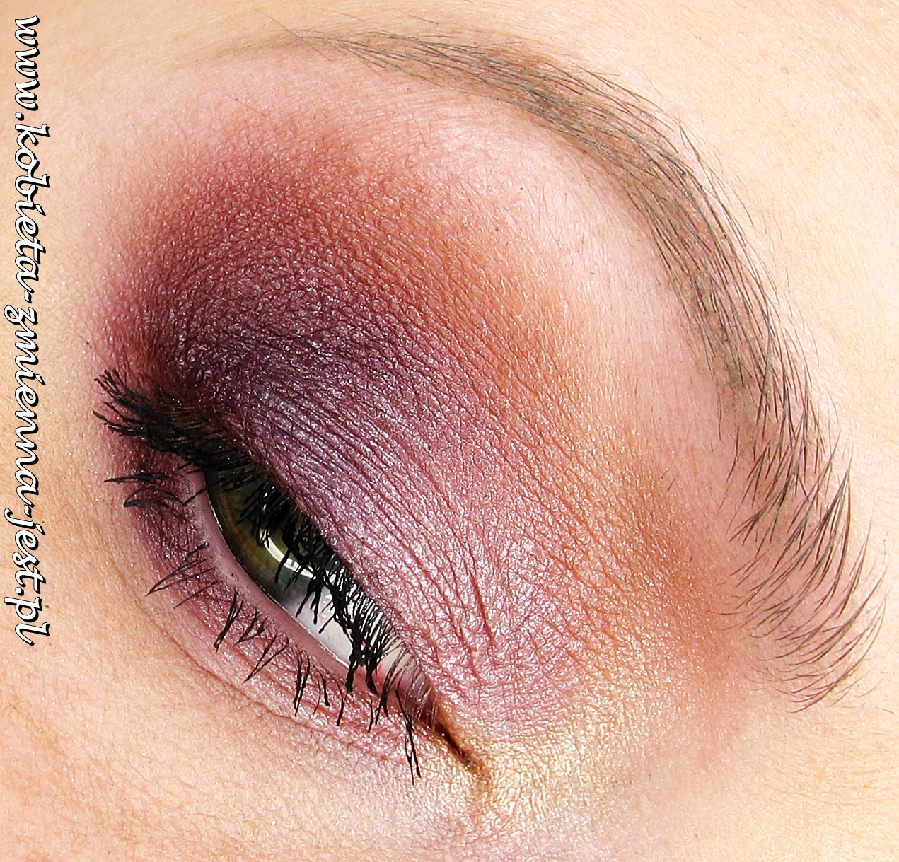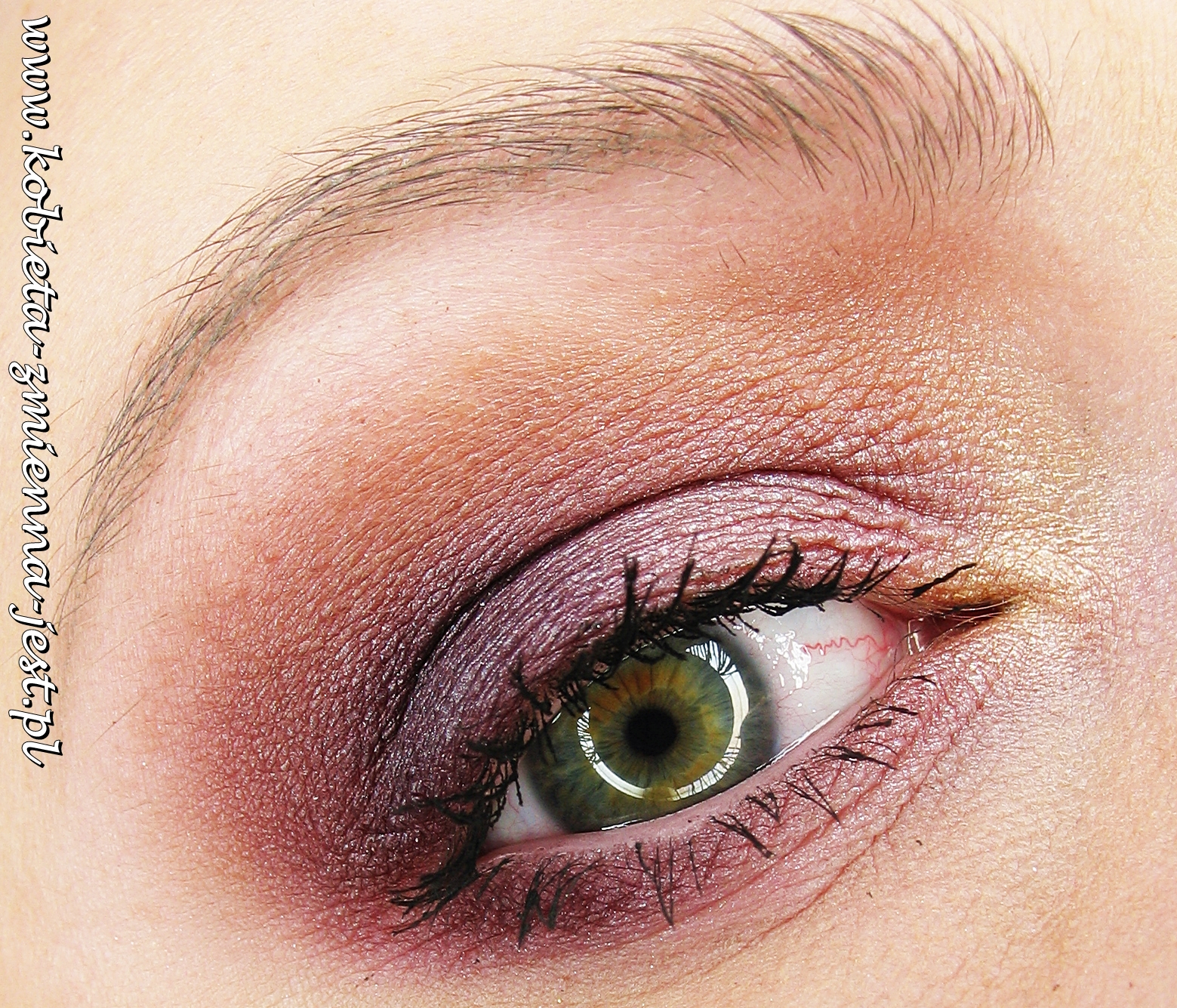 Do tego makijażu użyłam obu paletek Sleek: Vintage Romance oraz Garden of Eden. Ciepłe brązy w załamaniu, zewnętrzne kąciki przyciemnione oberżyną, powieka rozświetlona mglistym różem, a kąciki wewnętrzne rozświetlone złotem.