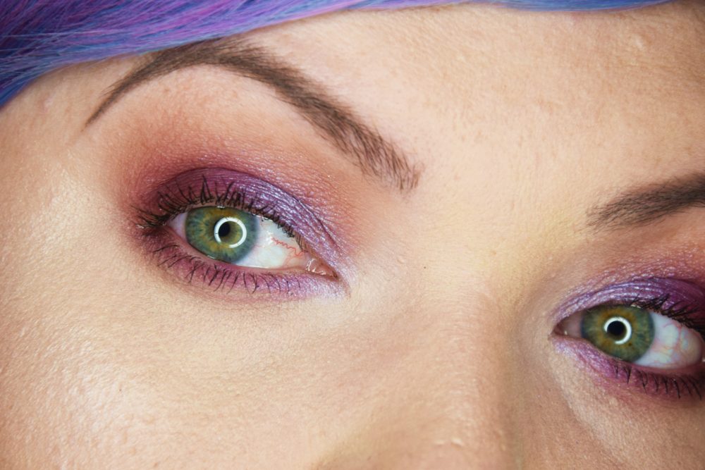 Moja propozycja przy użyciu tej paletki to takie szybkie, dzienne oczko oczywiście w fioletach. Cienie, których użyłam są zaznaczone ♥.