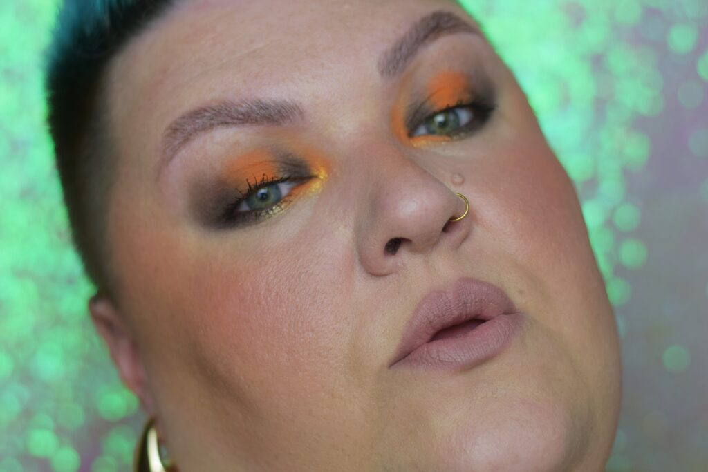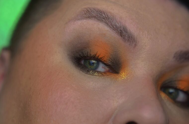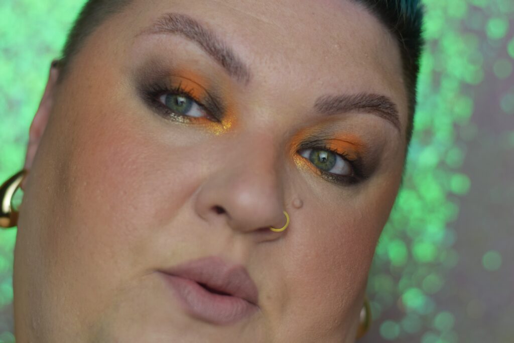 - Ten sam pomarańcz nakładam okalając wewnętrzny kącik a na to nakładam odrobinkę błysku w pomarańczu [DEDE’Signature Fearless Holiday #Sprinkles];