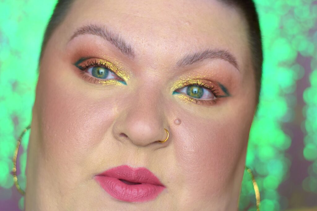 W trakcie zabawy paletą GlamShopu KWIAT PAPROCI poniosła mnie odrobinę inwencja twórcza. Stwierdziłam, że do klasycznego cieniowania dorzucę coś graficznego, żeby coś się zadziało… i wyszedł o taki leśny skrzat (tak mi się kojarzy 😉 ).