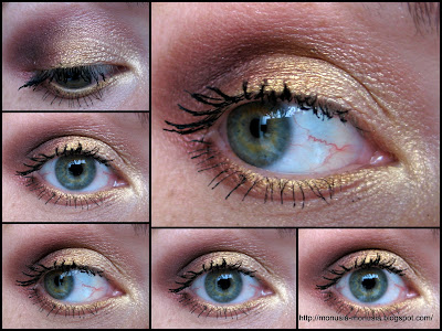 Dziś mam dla Was propozycję makijażu inspirowanego kolorystyką jesienną. Dziś rano te kolory same wpadły mi pod pędzelek, chyba udzielił mi się podświadomie jesienny klimat. Dwa odcienie złota oraz czerwony brąz w wykończeniu perłowym. Zapraszam! :o)