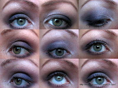 Tak mi się spodobało to rozcieranie, przydymianie i przyciemnianie, że tym razem też zrobiłam przydymione oczko, ale w fioletach.