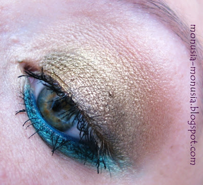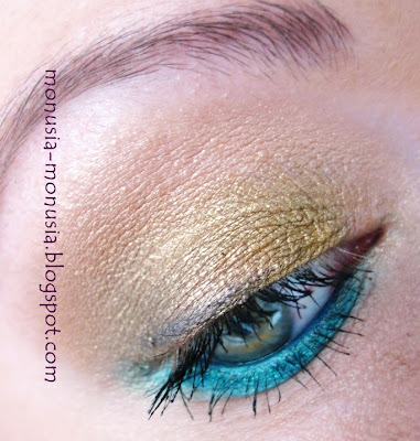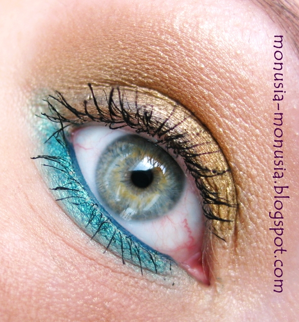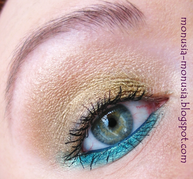 Podoba mi się to połączenie kolorów, ale coś mi w tym makijażu brakuje.. może czarnej kreski na górnej powiece albo podkreślonego załamania powieki, nie wiem:)