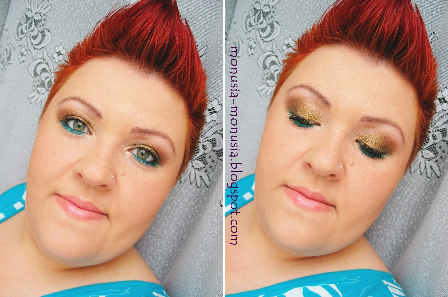 Kontrasty…. to sprawdzony sposób na ciekawy i fajny makijaż. Dziś ciepłe odcienie miedzi na górze, a na dole zimny turkus.