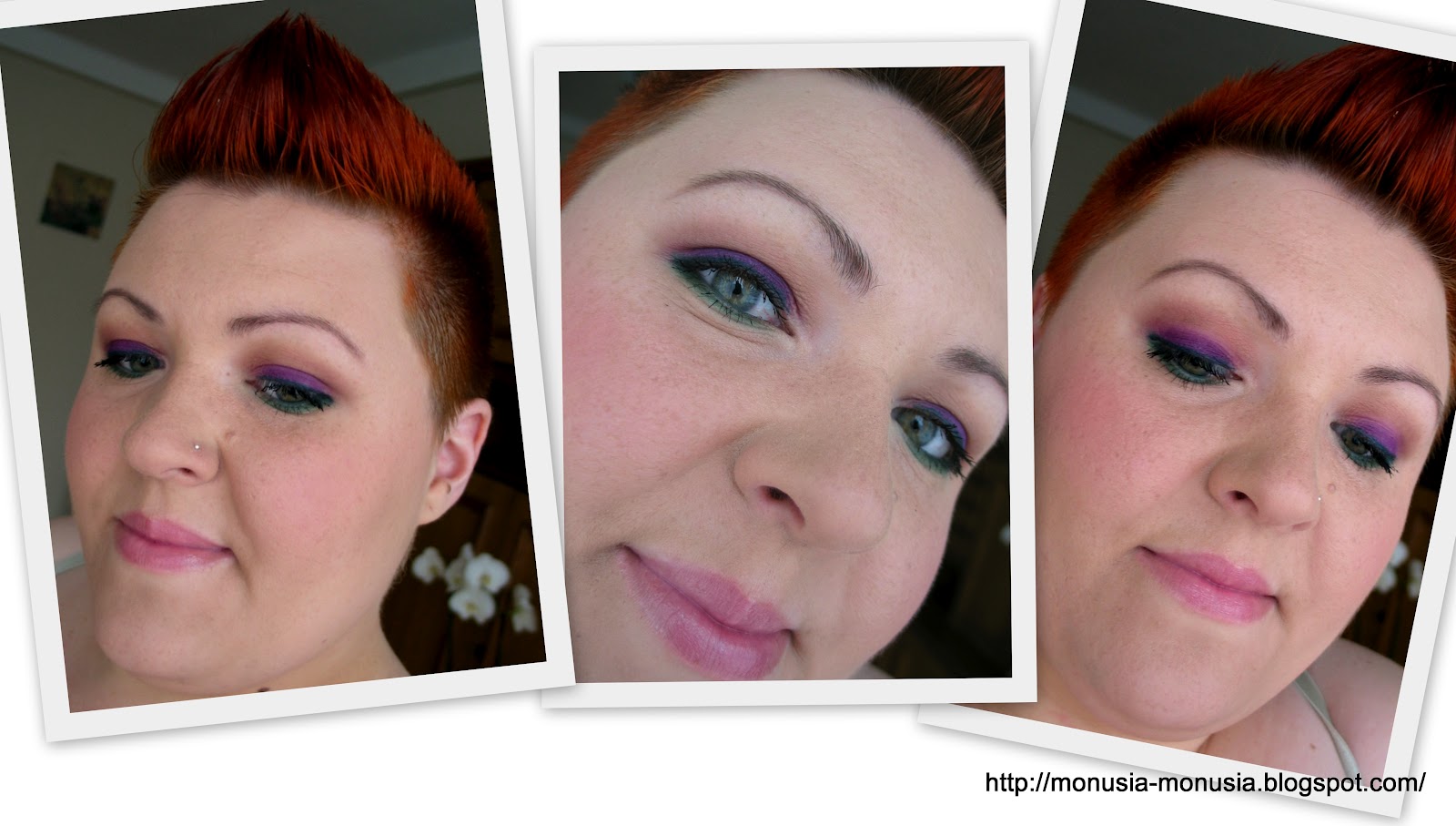 więcej fioletu i bardziej roztartego – może w następnym makijażu, kto wie.