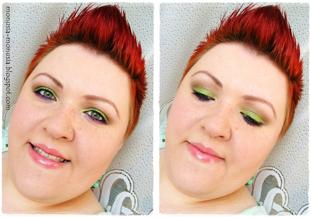 Po prawie 3 tygodniach nie malowania się (zwolnienie lekarskie) wracam z makijażem. Powiem Wam szczerze, że trochę się odzwyczaiłam i rozleniwiłam 😉 Także postawiłam na coś prostego, ale kolorowego. Połączenie limonkowej zieleni i fioletu.