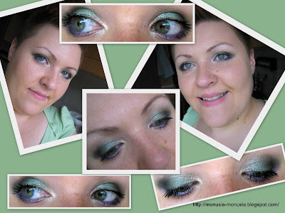Przyjemny i optymistyczny makijaż na jesienne smuty czyli radosna zieleń z fiolecikiem na dolnej powiece.