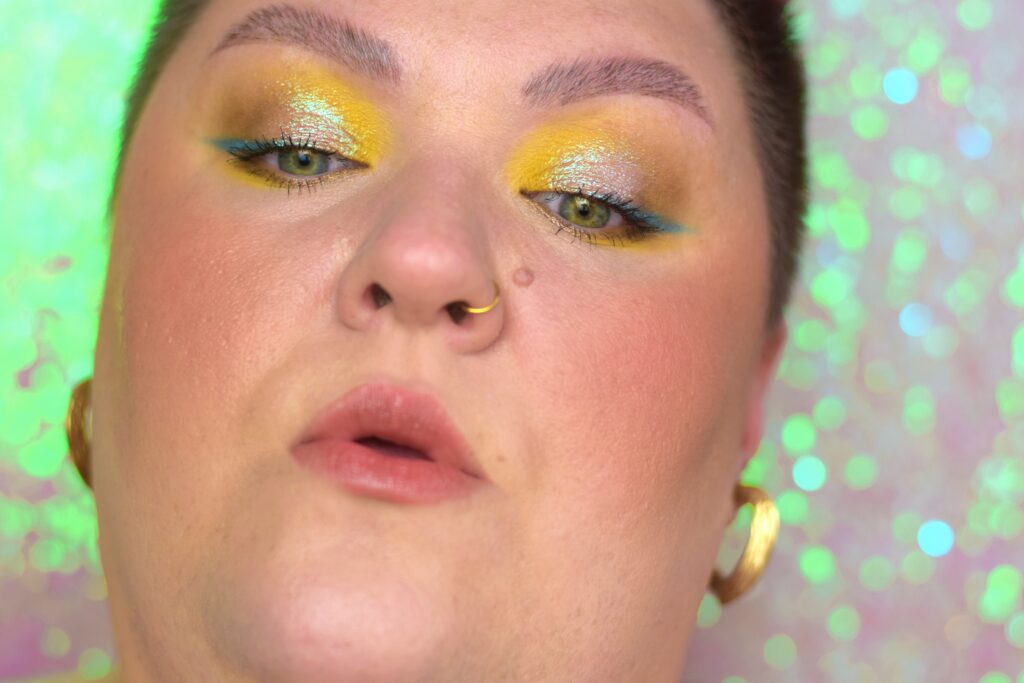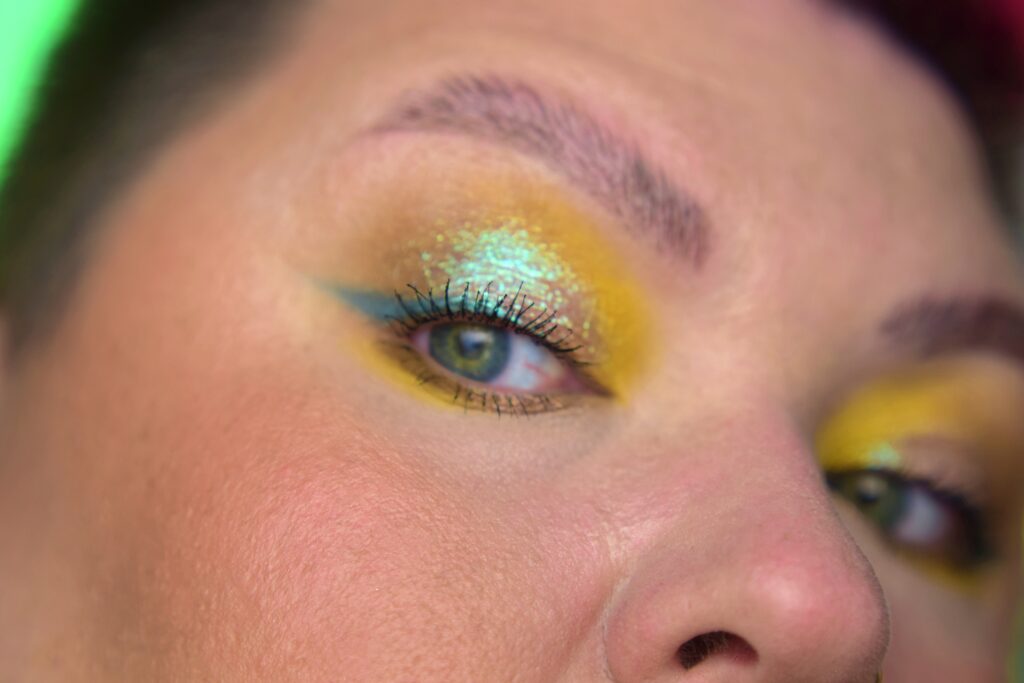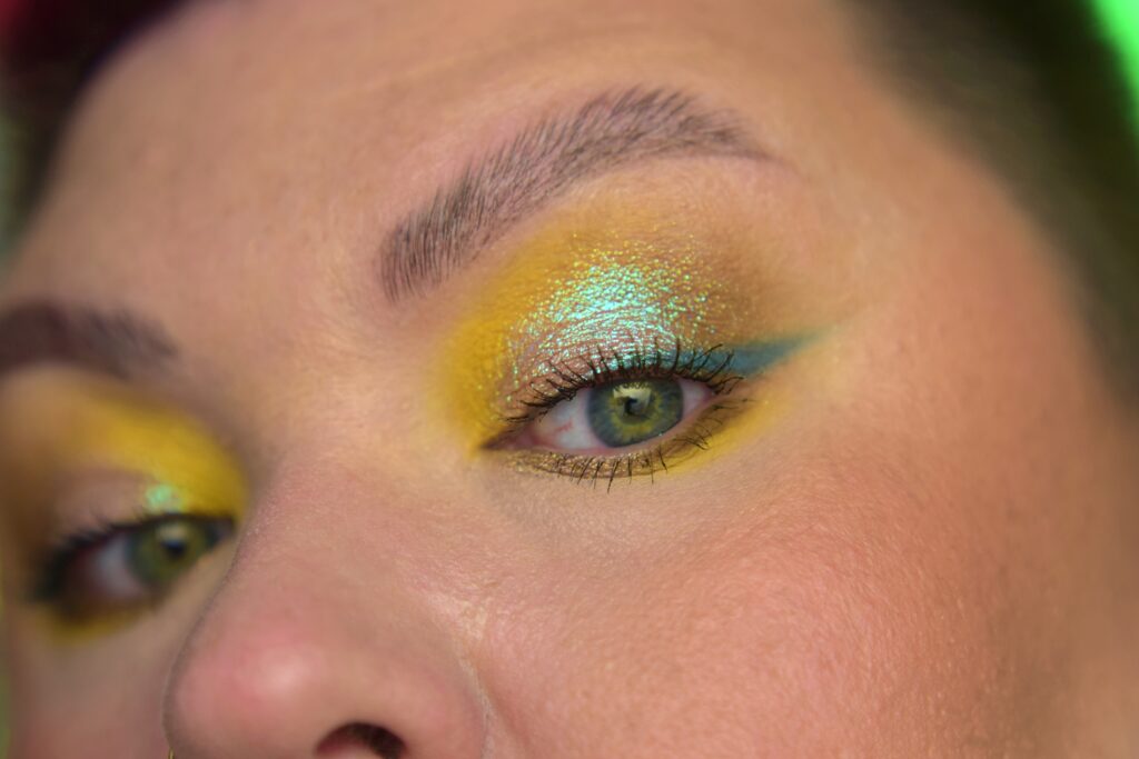 Czasami siadając do palety mam głowie tylko kolor przewodni np żółcień. A później dzieje się już tylko magia palety… patrzę gdzie mnie ona poniesie. Pomysł na makijaż przychodzi jak by znikąd, a połączenia kolorystyczne wskakują same. Za to właśnie lubię „gotowe” palety. Czasami są skonstruowane tak, że odpowiedź jest oczywista, ale czasami można przez przypadek odkryć nowe połączenia kolorów. Coś co na pierwszy rzut oka wydaje się zgrają przypadkowych kolorów, nagle coś klika…
