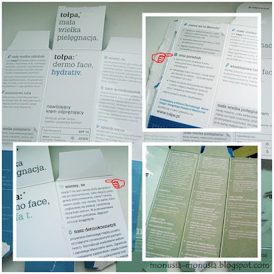 Takie informacje możecie znaleźć na zewnątrz kartoniku, wewnątrz zaś macie rozpisany cały plan pielęgnacji na dzień i na noc, który proponuje Wam Tołpa oraz jeszcze więcej ciekawostek i ważnych informacji o Waszym typie skóry. Dla mnie osobiście fantastyczny pomysł! 😉