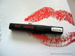 IsaDora Build-up Mascara Extra Volume – wersja próbkowa, bo 6 ml, ale wersja pełnowymiarowa to 12 ml więc całkiem „spora” próbeczka, uwielbiam testować tuszę do rzęs, moje rzęsy to trudny przeciwnik, zobaczymy jak ta da sobie radę.