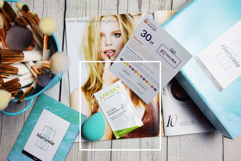 Na koniec w pudełku znajdujemy dwa upominki / prezenty. Pierwszy to Lab ONE N°1 Regenerujący szampon do włosów step 1 (w pudełku tylko saszetka 10 ml, pełnowymiarowy produkt to 189,00 zł / 400 ml ). Na moje krótkie włosy wystarczy na raz, kto ma dłuższe chyba nie skorzysta.