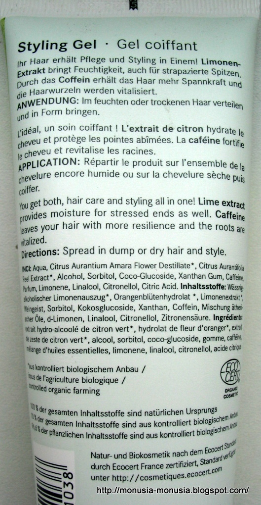 Od producenta: Z ekstraktem z limonki i kofeiną – wodoodporny, idealny dla naturalnego utrwalenia fryzury. Żel do stylizacji to dwa w jednym: pielęgnacja włosów oraz stylizacja! Ekstrakt z limonki dostarcza nawilżenia suchym końcówkom włosów. Zawarta w żelu kofeina dodaje włosom sprężystości i działa rewitalizująco na cebulki włosów. Cena: 29,50 zł.