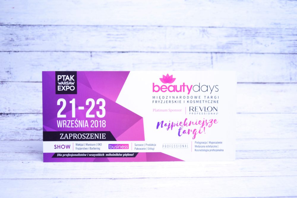 Na samym już końcu produkt VIP, a mianowicie zaproszenie na Międzynarodowe Targi Fryzjerskie i Kosmetyczne Beauty Days w Ptak Warsaw Expo dla dwóch osób w dniach 21-23 września 2018. Miałam okazję być na tych targach w 2017 roku także polecam każdej miłośniczce kosmetyków, fryzjerstwa oraz ogólnie pojętego piękna. Niestety tym razem nie skorzystam, bo nie wybieram się w najbliższy weekend do Warszawy.