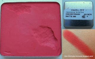 | Inglot 366 Matte – jest to czerwień matowa, jest to kompilacja malinowej i pomidorowej czerwieni |