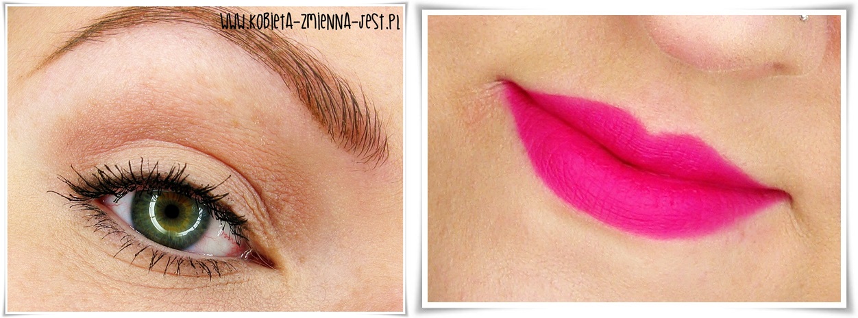 Idealnym dopełnieniem takiego minimalistycznego oka są mocne usta! Ja postawiłam na fuksję (Bourjois Rouge Edition Velvet #06 pink pong), ale może być także klasyczna czerwień lub zimny róż. Warto jednak pamiętać, żeby sięgnąć po taki produkt, który jest longlasting i warto, aby była to szminka matowa – nadal trendy! 😉