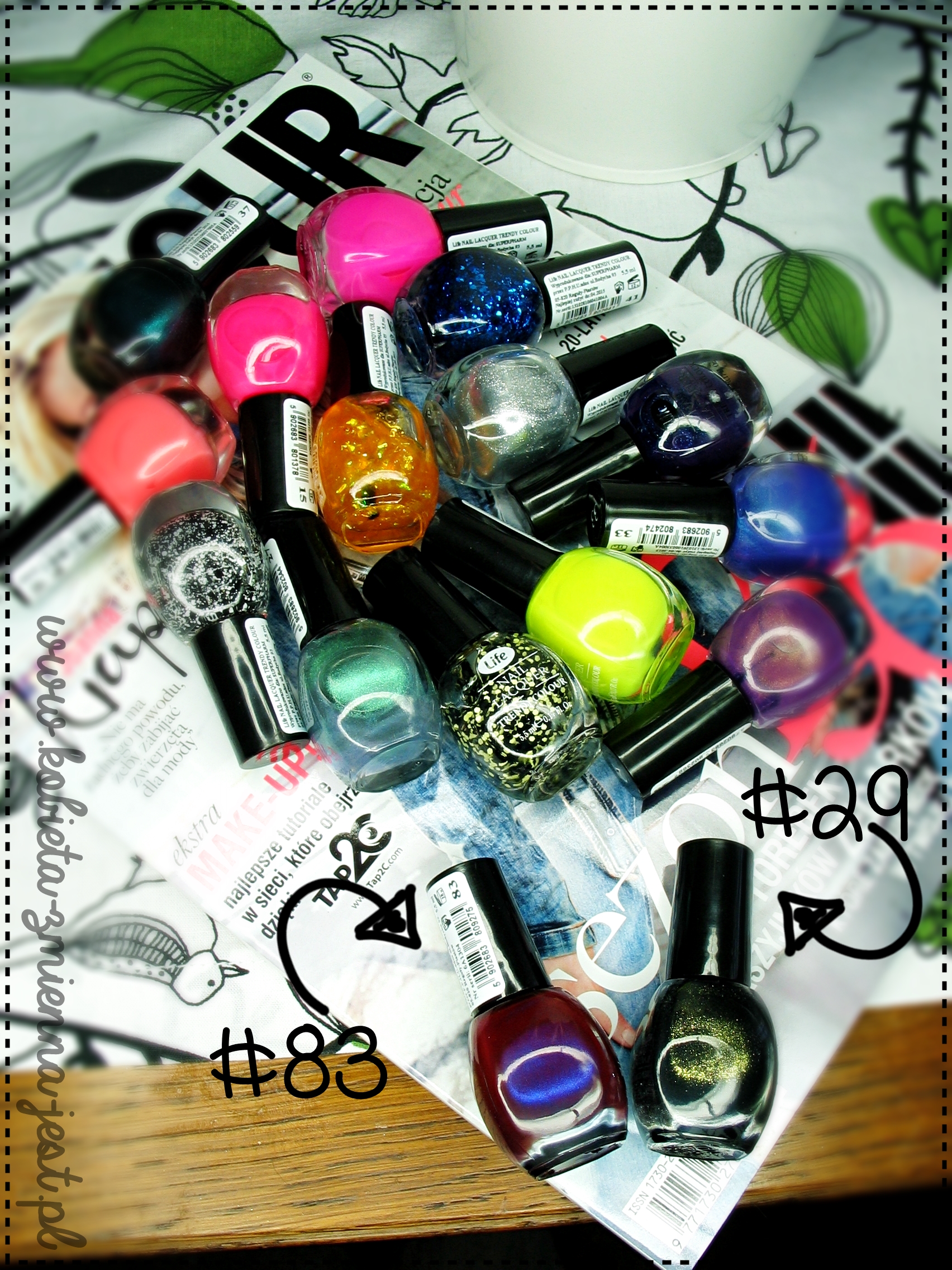 jnie 1,5 tygodnia bez ścierania końcówek i zarysowań (a jestem „perfekcyjną panią domu” ha ha ha 😀 więc zmywam, gotuję i sprzątam, a w pracy pracuję w rękawiczkach i dużo pracuję rękoma więc ich nie oszczędzam). W tym miesiącu królowały na moich paznokciach dwa przepiękne, ciemne kolory: #29 czyli czerń ze złotym pyłem (nie brokatem, tylko pięknym, złotym pyłem! bardzo drobno zmielonym), #83 czyli oberżyna opalizująca na niebiesko/fioletowo! Oba odcienie bardzo eleganckie, zimowe i kobiece.